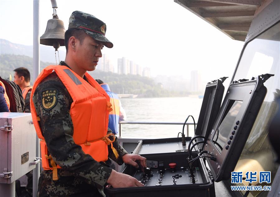 10月28日,武警重慶市總隊船艇支隊隊員在操作水下機器人系統(tǒng)進行搜救。