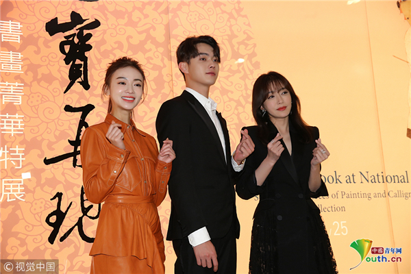 10月31日,臺(tái)北,《延禧攻略》主要演員秦嵐、吳謹(jǐn)言、許凱參觀臺(tái)北故宮。吳謹(jǐn)言梳高馬尾辮,元?dú)鉂M滿比心超甜美。秦嵐穿黑色長(zhǎng)裙氣質(zhì)非凡,親切揮手顯優(yōu)雅,可以說(shuō)是“富察皇后”本人了,與吳謹(jǐn)言牽手秀友誼惹人羨慕。