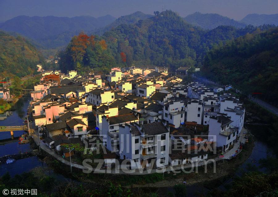 深圳新聞網(wǎng)訊 四面青山環(huán)繞,小河成大半圓形圍繞一周,眼前這個(gè)山環(huán)水繞的小村莊被稱(chēng)為“中國(guó)最圓的村莊”,沿山間小路建設(shè)的臺(tái)階而上,站在一處觀景臺(tái)往下看,這個(gè)村子的形狀在山水襯托下,宛如一個(gè)圓形的島嶼。