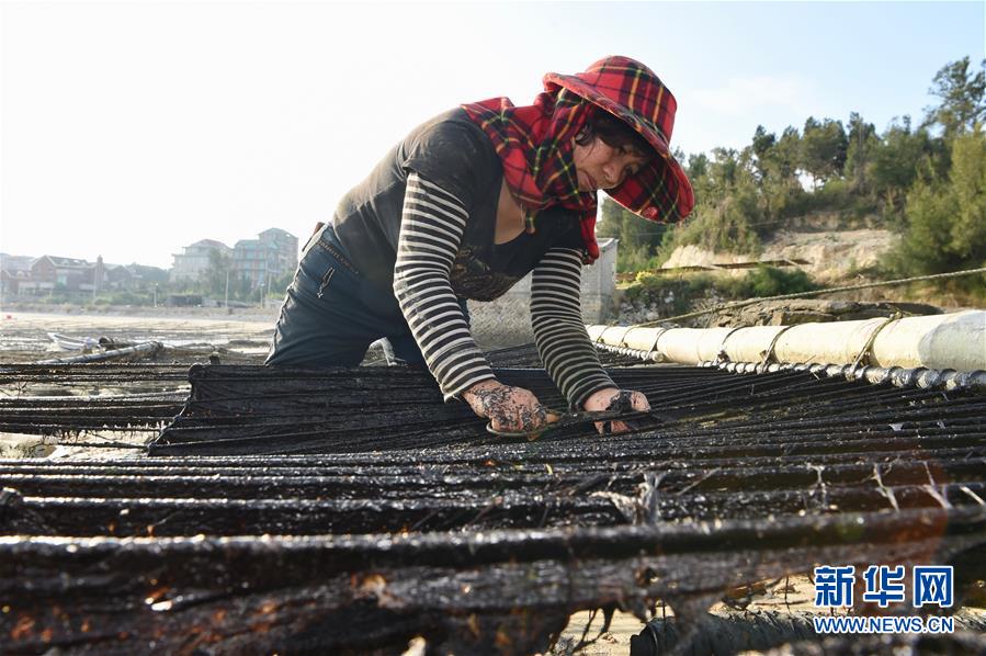 10月24日,福建莆田蔣山村村民在收獲紫菜。 新華社記者姜克紅 攝