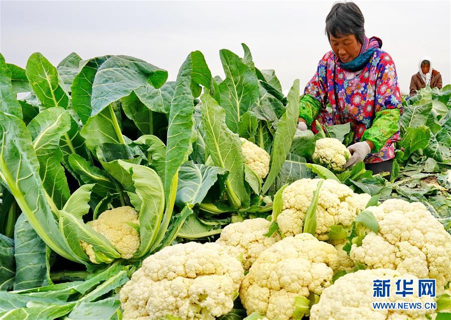 11月5日,唐山海港經(jīng)濟開發(fā)區(qū)王灘鎮(zhèn)東高各莊村的菜農(nóng)在收獲菜花。