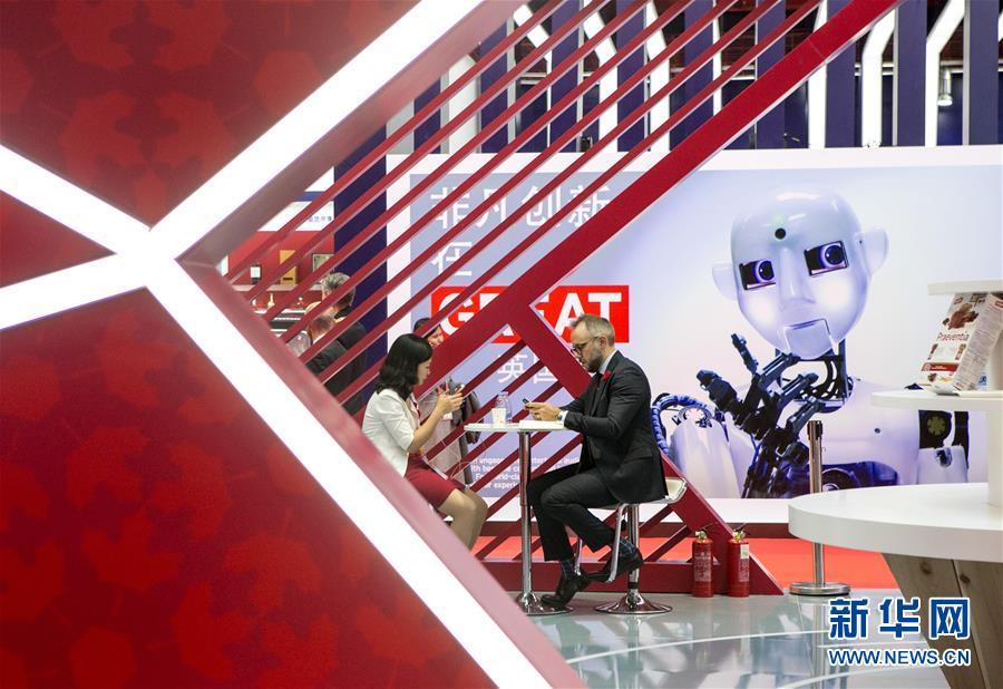 11月5日,參展商在加拿大展館內交流。 新華社記者 李京 攝