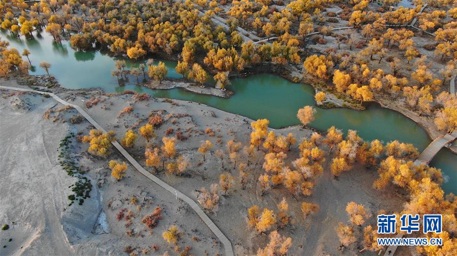 新疆尉犁縣胡楊林深處的一條小路(10月25日攝)。 10月中下旬,靜靜的塔里木河中下游一片金黃。胡楊深處,條條小路蜿蜒綿長通向遠方,引人入勝。 塔里木河是中國最長的內(nèi)陸河,這一區(qū)域原始胡楊林分布較為集中。隨著塔里木河連續(xù)19次向下游生態(tài)輸水,為胡楊林“解渴”,塔河兩岸生態(tài)得到明顯改善,沙地面積逐年減少。 新華社記者趙戈攝