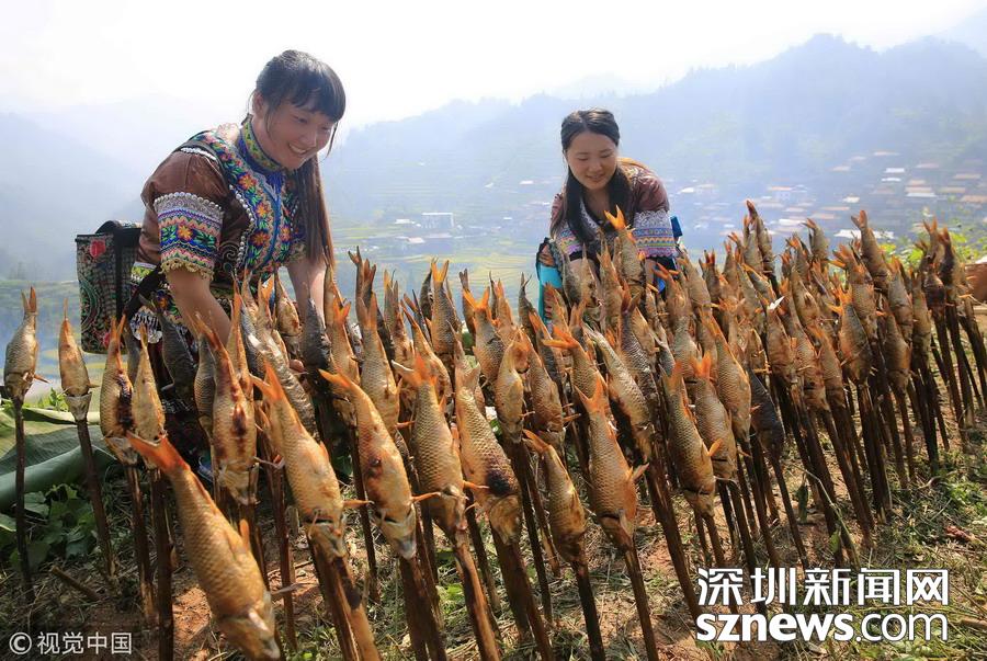 廣西柳州市融水縣山區(qū)有插秧時(shí)節(jié)放養(yǎng)鯉魚苗的習(xí)俗,金秋時(shí)節(jié)稻熟魚肥,收稻燒魚成為別致一景。