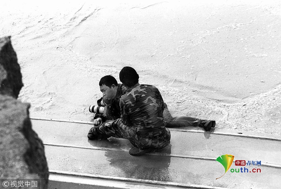 2000年10月10日,華商報(bào)記者鄧長泰在渭河決口處采訪時(shí)落入激流。 華商報(bào)記者 鄧長泰 圖片作者:胡國慶/視覺中國