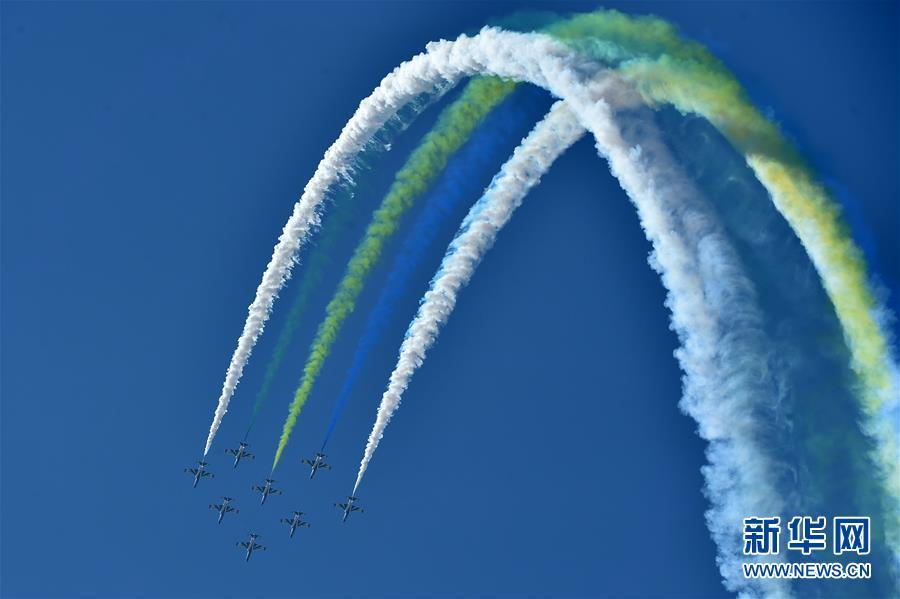 11月6日,中國空軍八一飛行表演隊在航展現(xiàn)場進行飛行表演。當(dāng)日,第十二屆中國國際航空航天博覽會在珠海開幕。 新華社記者梁旭攝