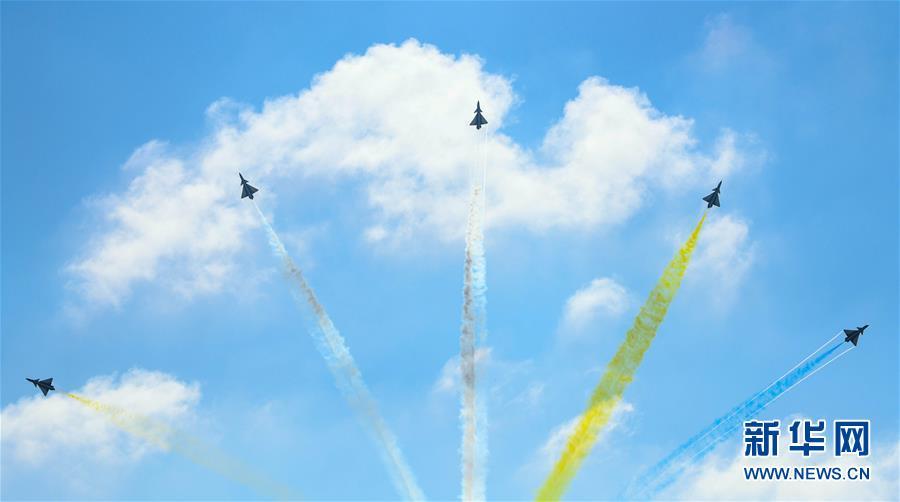 11月6日,中國空軍八一飛行表演隊在航展現(xiàn)場進行飛行表演。當(dāng)日,第十二屆中國國際航空航天博覽會在珠海開幕。 新華社記者鄧華攝