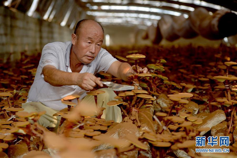 8月22日,河北省沙河市蟬房鄉(xiāng)水磨頭村農(nóng)民在大棚內(nèi)修剪靈芝。 新華社記者 牟宇 攝