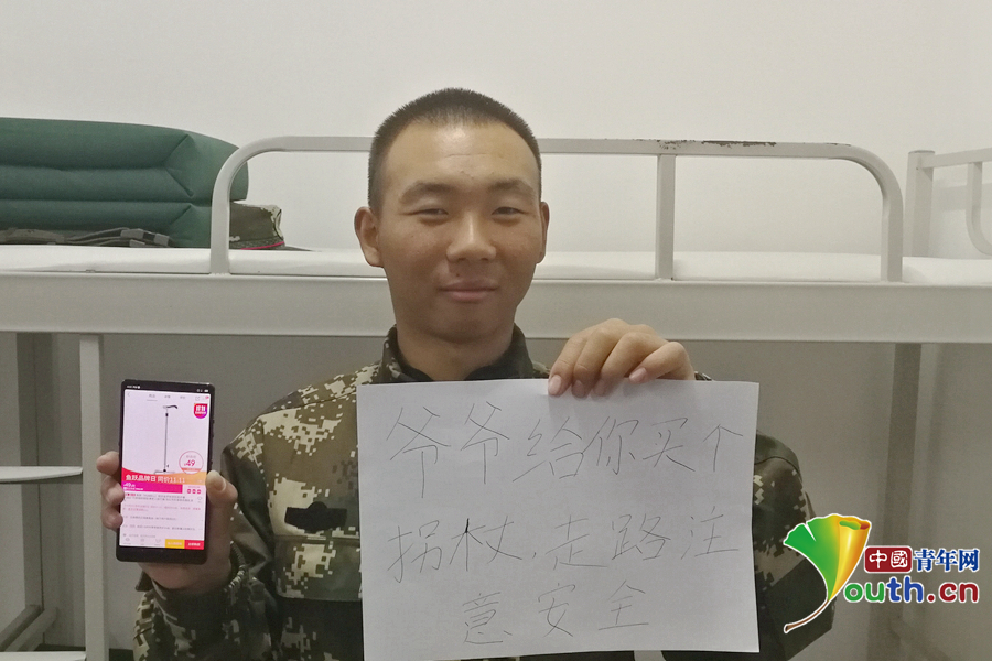 “爺爺年紀大了,走路有點不利索,給你買個拐杖,走路的時候一定注意安全?!蔽渚本┛傟爤?zhí)勤第二支隊供圖。