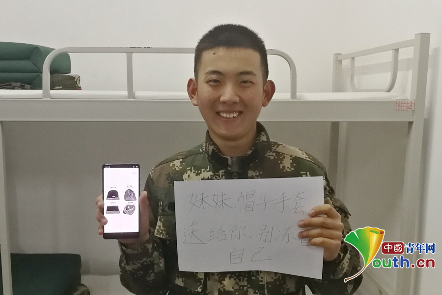 “俺們東北那旮瘩冬天特別冷,給妹妹買個防寒帽和棉手套,這樣上學就不會冷了?!蔽渚本┛傟爤?zhí)勤第二支隊供圖。