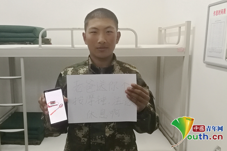 “班長總說我太瘦,買罐蛋白粉,我要快點變強壯?!蔽渚本┛傟爤?zhí)勤第二支隊供圖。
