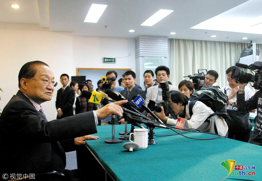 2003您7月24日,杭州,在回答記者提問時,金庸先生回答說已經(jīng)收了3個學生。圖片作者:羅先明