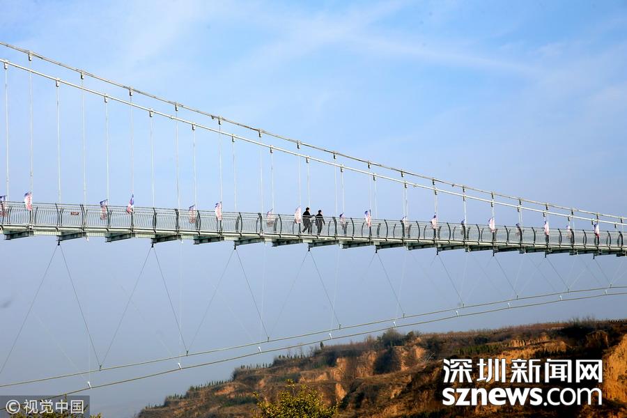 深圳新聞網(wǎng)訊 河南三門峽,位于陜州地坑院景區(qū)玻璃天橋。該項目橋梁總投資2600萬元,全長368米,寬3米,高108米,是目前河南省內(nèi)最長的玻璃天橋,還將陸續(xù)對外開放夜景效果、聲光效果以及更多的體驗效果,逐步打造成整個豫西地區(qū)乃至全省的旅游打卡新地標。