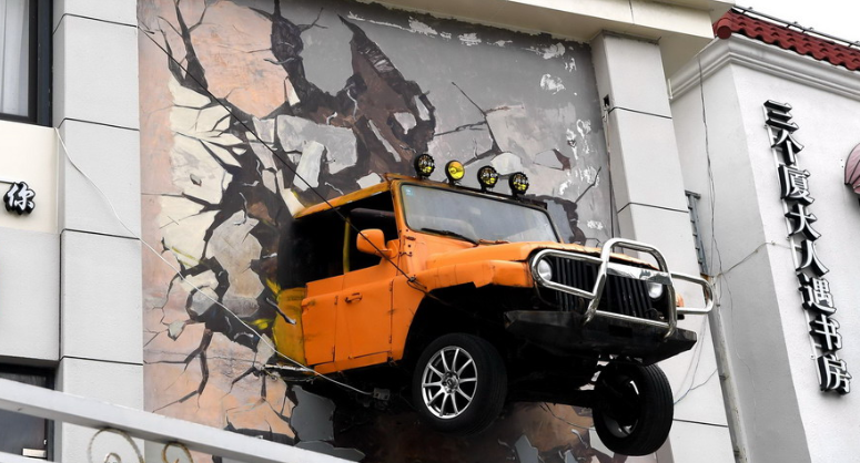 廈門:汽車“破”墻而出