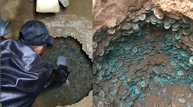 陜西渭南一工地發(fā)現古幣 共重920 ...