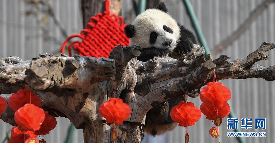 這是在中國(guó)大熊貓保護(hù)研究中心臥龍神樹坪基地拍攝的大熊貓(2018年2月15日攝)。 新華社記者 薛玉斌 攝