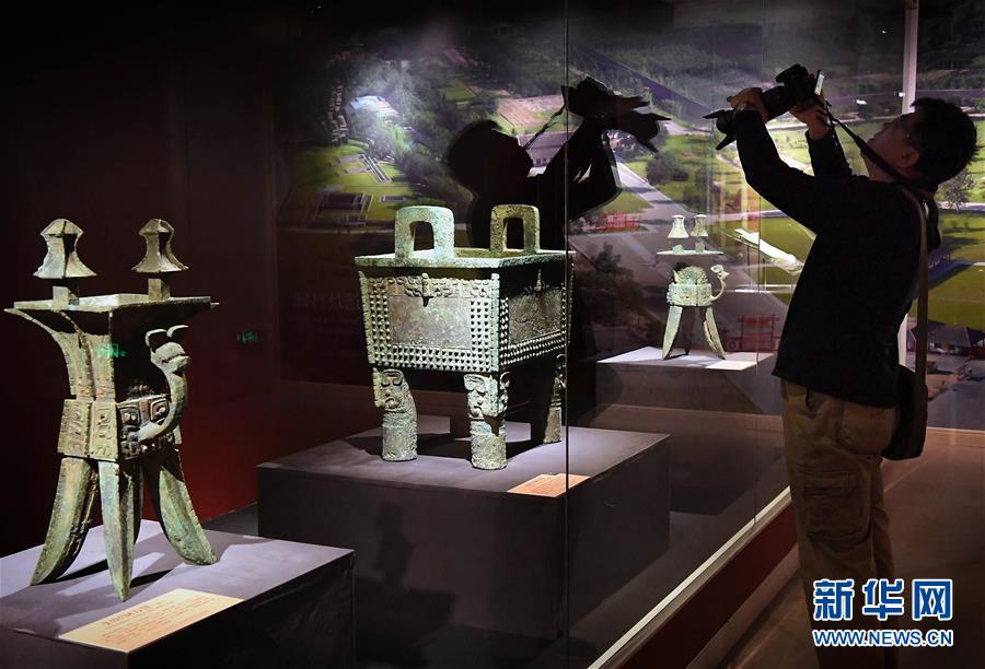 10月12日,參觀者在安陽博物館參觀拍攝。目前,“鳳歸大邑商——殷墟婦好文物安陽故里展”正在安陽博物館展出,共展出文物474件。1976年被考古學(xué)家發(fā)現(xiàn)的婦好墓,是世界文化遺產(chǎn)、中國商代后期都城遺址——殷墟唯一保存完整的商代王室墓葬。新華社記者李安攝