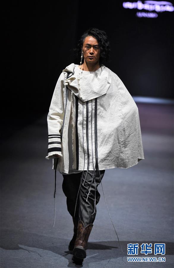 模特在AJ-NAMO藏裝秀上展示藏族設(shè)計(jì)師阿佳娜姆設(shè)計(jì)的時(shí)裝(11月18日攝)。 新華社記者 普布扎西攝
