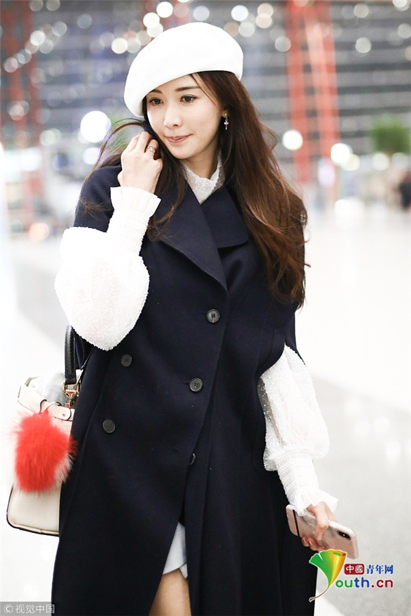 11月19日,北京,林志玲現(xiàn)身機(jī)場,林志玲穿黑色大衣配貝雷帽溫暖俏皮,揮手賣萌露修長美腿女神氣質(zhì)爆棚。