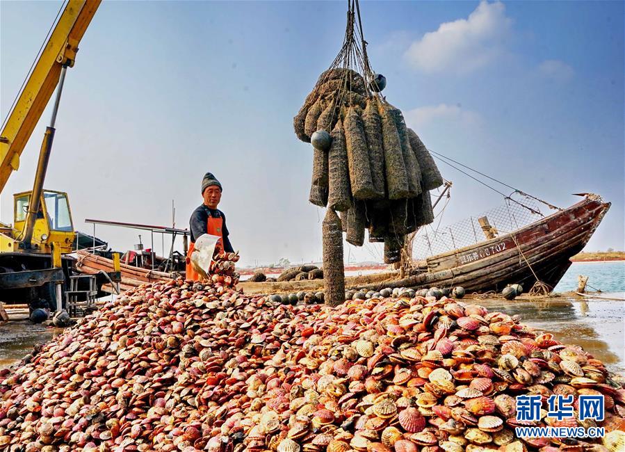 10月22日,樂亭縣姜各莊鎮(zhèn)南海濱村的養(yǎng)殖戶在漁船碼頭將收獲的扇貝卸下船。 近年來,河北省樂亭縣通過建設(shè)海洋牧場科學布局養(yǎng)殖區(qū)域、采用新技術(shù)新模式提升養(yǎng)殖質(zhì)量、成立專業(yè)合作社實行集約化經(jīng)營等措施,積極助推扇貝養(yǎng)殖加工產(chǎn)業(yè)發(fā)展,取得良好效益。據(jù)介紹,今年該縣扇貝養(yǎng)殖面積達32萬畝,預(yù)計鮮貝產(chǎn)量達5.5萬噸,產(chǎn)值3.8億元。 新華社記者楊世堯攝