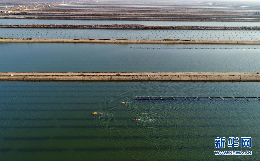10月22日,樂亭縣姜各莊鎮(zhèn)二節(jié)村海參養(yǎng)殖基地的工人在捕撈海參(無人機拍攝)。 時下,正值渤海灣地區(qū)海參收獲時節(jié),河北省樂亭縣的海參養(yǎng)殖戶忙著捕撈海參,供應(yīng)各地市場。據(jù)介紹,該縣海域水質(zhì)優(yōu)良、氣候適宜,是海參養(yǎng)殖的理想場地,目前發(fā)展池塘造礁養(yǎng)殖海參面積6萬畝,年產(chǎn)鮮活海參6000多噸,年產(chǎn)值2億多元。 新華社記者 楊世堯 攝