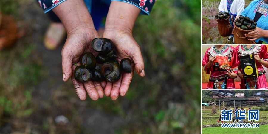 拼版照片:左圖為在拱洞鄉(xiāng)龍令村,貧困戶龍亞手捧剛剛收獲的田螺(11月17日攝);右上圖為龍亞展示收獲的田螺(11月17日攝);右中圖為龍令村養(yǎng)殖的田螺已經(jīng)成為柳州螺螄粉的原材料(10月28日攝);右下圖為龍亞(右一)在稻田里撈田螺(11月17日攝)。今年,拱洞鄉(xiāng)大力發(fā)展稻田養(yǎng)螺產(chǎn)業(yè),目前,全鄉(xiāng)田螺養(yǎng)殖面積突破4000畝,參與的貧困農(nóng)戶有600多戶。 廣西融水苗族自治縣是國家扶貧工作重點(diǎn)縣,全縣“九山半水半分田”,生活生產(chǎn)環(huán)境較為惡劣,脫貧攻堅(jiān)任務(wù)艱巨,目前還有7.68萬貧困人口。面對(duì)經(jīng)濟(jì)發(fā)展落后、貧困面廣且程度深的現(xiàn)狀,當(dāng)?shù)匕衙撠毠?jiān)與創(chuàng)新產(chǎn)業(yè)扶持相結(jié)合,依托生態(tài)資源優(yōu)勢(shì),實(shí)施“特色產(chǎn)業(yè)富民行動(dòng)”,通過發(fā)展特色民族旅游、林下經(jīng)濟(jì)和特色養(yǎng)殖業(yè)等扶貧產(chǎn)業(yè),帶動(dòng)貧困群眾依靠勤勞的雙手,拔窮根摘窮帽,實(shí)現(xiàn)脫貧致富。據(jù)了解,目前全縣貧困戶參與特色產(chǎn)業(yè)發(fā)展的有2.9萬戶,扶貧產(chǎn)業(yè)覆蓋率達(dá)95%。 新華社記者 黃孝邦 攝