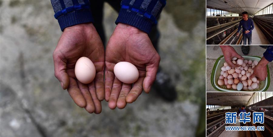 拼版照片:左圖為貧困戶李先強(qiáng)手捧養(yǎng)殖合作社生產(chǎn)的雞蛋(11月19日攝);右圖為李先強(qiáng)在雞舍里撿雞蛋(照片均攝于11月19日)。李先強(qiáng)是融水苗族自治縣香粉鄉(xiāng)香粉村的貧困戶,從2016年開始,他和15個(gè)貧困戶一起發(fā)展土雞養(yǎng)殖。目前合作社養(yǎng)有3000多只雞,年產(chǎn)雞蛋1萬多斤。 廣西融水苗族自治縣是國家扶貧工作重點(diǎn)縣,全縣“九山半水半分田”,生活生產(chǎn)環(huán)境較為惡劣,脫貧攻堅(jiān)任務(wù)艱巨,目前還有7.68萬貧困人口。面對(duì)經(jīng)濟(jì)發(fā)展落后、貧困面廣且程度深的現(xiàn)狀,當(dāng)?shù)匕衙撠毠?jiān)與創(chuàng)新產(chǎn)業(yè)扶持相結(jié)合,依托生態(tài)資源優(yōu)勢(shì),實(shí)施“特色產(chǎn)業(yè)富民行動(dòng)”,通過發(fā)展特色民族旅游、林下經(jīng)濟(jì)和特色養(yǎng)殖業(yè)等扶貧產(chǎn)業(yè),帶動(dòng)貧困群眾依靠勤勞的雙手,拔窮根摘窮帽,實(shí)現(xiàn)脫貧致富。據(jù)了解,目前全縣貧困戶參與特色產(chǎn)業(yè)發(fā)展的有2.9萬戶,扶貧產(chǎn)業(yè)覆蓋率達(dá)95%。 新華社記者 黃孝邦 攝