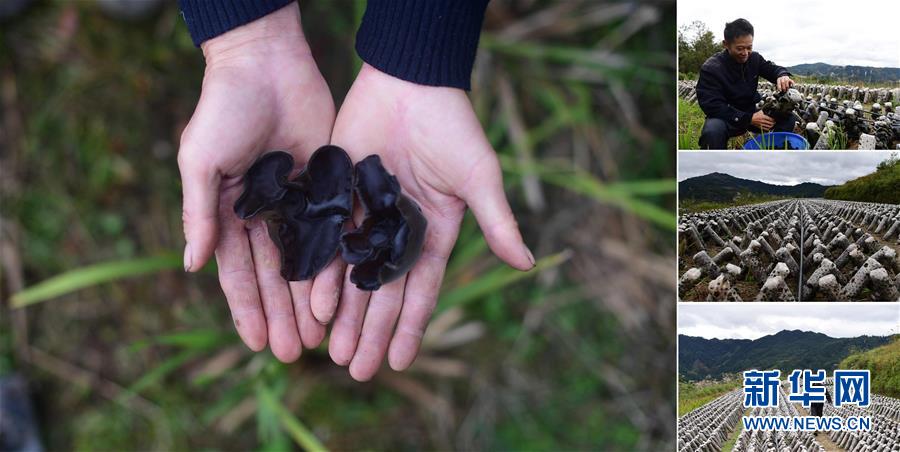 拼版照片:左圖為在大浪鎮(zhèn)上里村,致富帶頭人唐志海手捧剛剛收獲的木耳;右上圖為唐志海在木耳種植基地里采摘木耳;右中圖為木耳種植基地;右下圖為唐志海在木耳種植基地里查看木耳長(zhǎng)勢(shì)(照片均攝于11月18日)。近年來,上里村依靠發(fā)展紅薯、木耳種植,已于2016年實(shí)現(xiàn)脫貧。 廣西融水苗族自治縣是國家扶貧工作重點(diǎn)縣,全縣“九山半水半分田”,生活生產(chǎn)環(huán)境較為惡劣,脫貧攻堅(jiān)任務(wù)艱巨,目前還有7.68萬貧困人口。面對(duì)經(jīng)濟(jì)發(fā)展落后、貧困面廣且程度深的現(xiàn)狀,當(dāng)?shù)匕衙撠毠?jiān)與創(chuàng)新產(chǎn)業(yè)扶持相結(jié)合,依托生態(tài)資源優(yōu)勢(shì),實(shí)施“特色產(chǎn)業(yè)富民行動(dòng)”,通過發(fā)展特色民族旅游、林下經(jīng)濟(jì)和特色養(yǎng)殖業(yè)等扶貧產(chǎn)業(yè),帶動(dòng)貧困群眾依靠勤勞的雙手,拔窮根摘窮帽,實(shí)現(xiàn)脫貧致富。據(jù)了解,目前全縣貧困戶參與特色產(chǎn)業(yè)發(fā)展的有2.9萬戶,扶貧產(chǎn)業(yè)覆蓋率達(dá)95%。 新華社記者 黃孝邦 攝