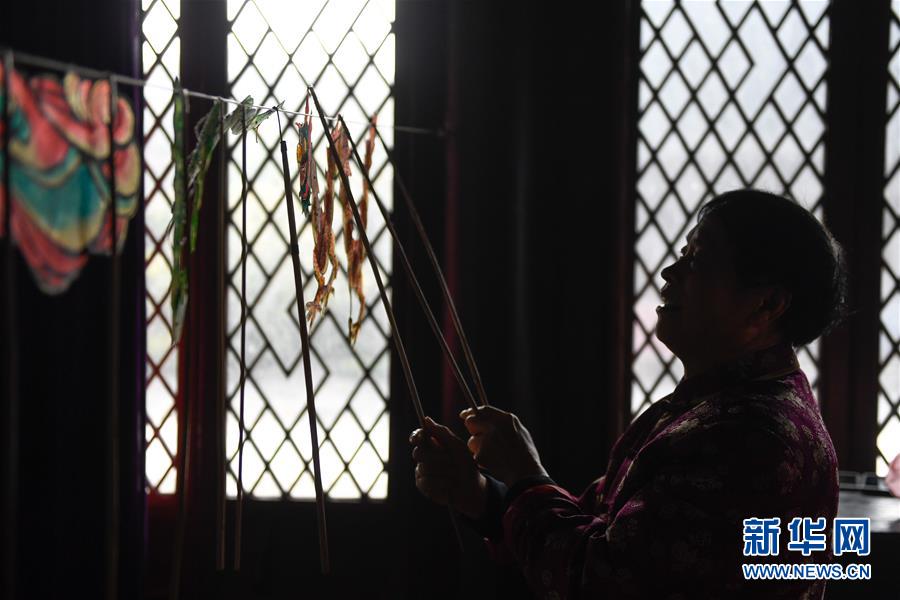 11月20日,在浙江海寧市南關廂歷史街區(qū),張坤榮在表演皮影戲前做準備。新華社記者黃宗治攝