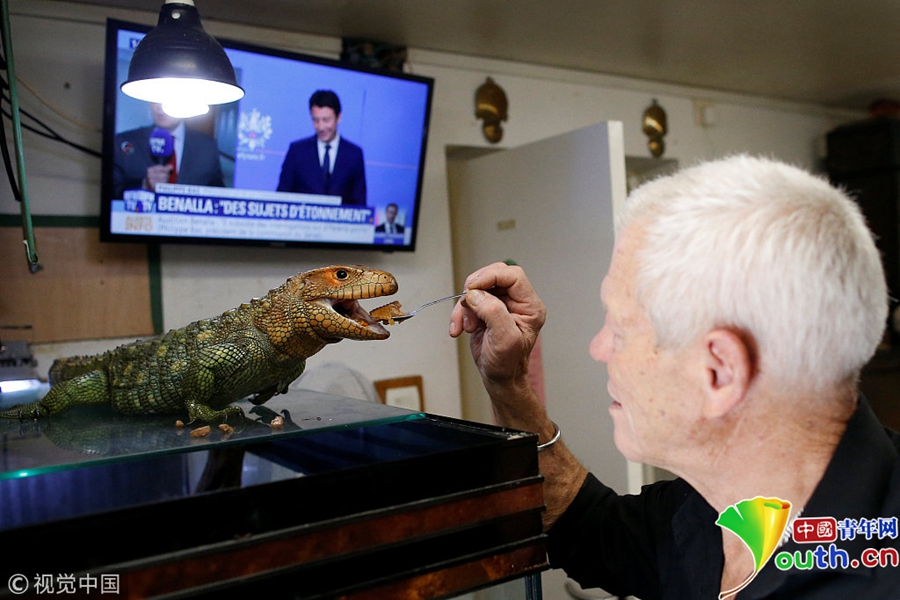 用小湯匙喂蜥蜴。盡管Philippe Gillet的這些寵物看起來對(duì)他并無傷害,但是家里有400多只爬行動(dòng)物遍布角落的感覺是什么樣,請(qǐng)自行體會(huì)。