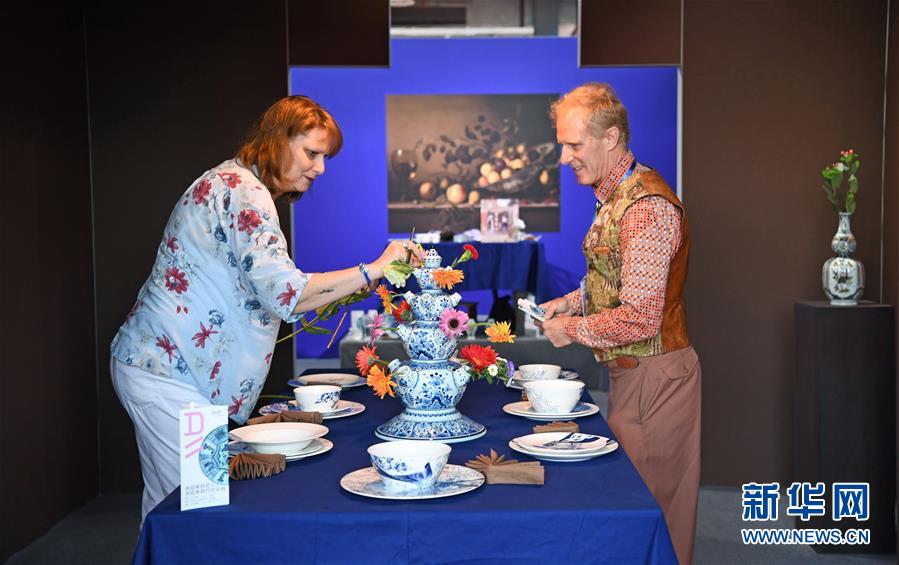 在中國景德鎮(zhèn)國際陶瓷博覽會(huì)的現(xiàn)場(chǎng),來自荷蘭的參展商正在布置展臺(tái)(10月18日攝)。 新華社記者 萬象 攝