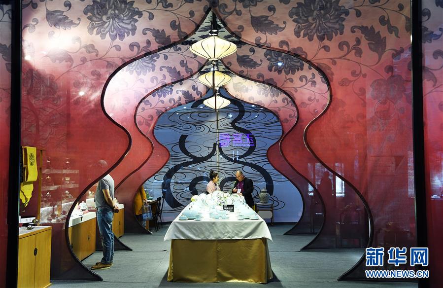 參觀者正在中國景德鎮(zhèn)國際陶瓷博覽會(huì)參觀(10月18日攝)。 新華社記者 萬象 攝