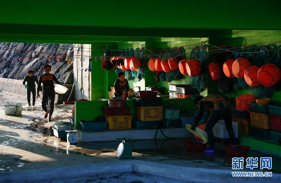 11月23日,海女們?cè)陧n國(guó)濟(jì)州島的一處海岸附近處理打撈出的海產(chǎn)品。新華社記者王婧嬙攝