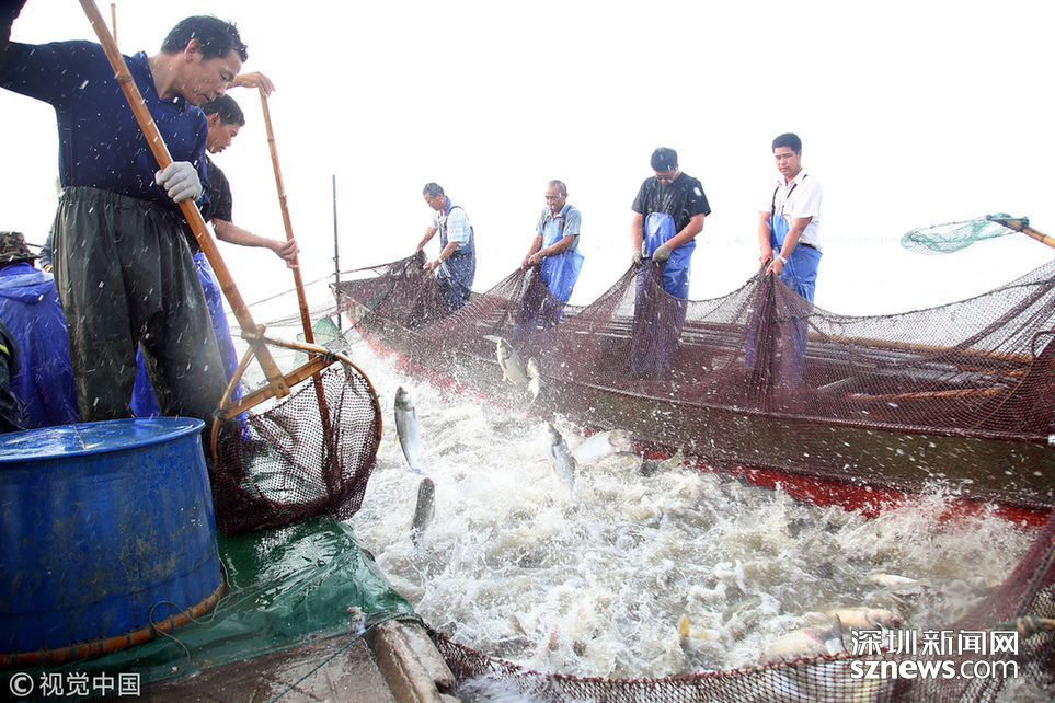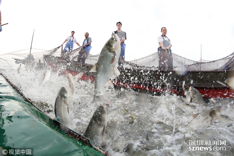 深圳新聞網(wǎng)訊 2018年6月26日,江蘇省常州市嘉澤鎮(zhèn)捕撈村的漁民組織夏季捕撈,一網(wǎng)魚(yú)達(dá)五萬(wàn)余斤,以鰱魚(yú)為主,供應(yīng)市場(chǎng)需求。夏捕的魚(yú)價(jià)較平時(shí)有所上漲,漁民粗略估計(jì)可增收上萬(wàn)余元。