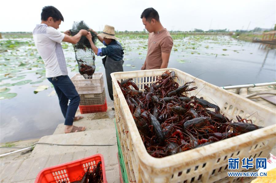5月23日,在南昌市新建區(qū)象山鎮(zhèn)河林村,當(dāng)?shù)剞r(nóng)戶將捕獲的小龍蝦搬運(yùn)上岸裝箱。近日,江西省南昌市新建區(qū)1.7萬(wàn)畝水域養(yǎng)殖小龍蝦喜獲豐收,當(dāng)?shù)剞r(nóng)戶紛紛將鮮活的小龍蝦捕獲上岸,裝箱外銷。據(jù)了解,近年來(lái),南昌市新建區(qū)發(fā)揮轄區(qū)內(nèi)河道縱橫,水田眾多的優(yōu)勢(shì),支持鼓勵(lì)農(nóng)戶發(fā)展小龍蝦養(yǎng)殖業(yè),為當(dāng)?shù)剞r(nóng)戶開(kāi)辟了一條特色養(yǎng)殖的致富之路。新華社記者彭昭之 攝 |
