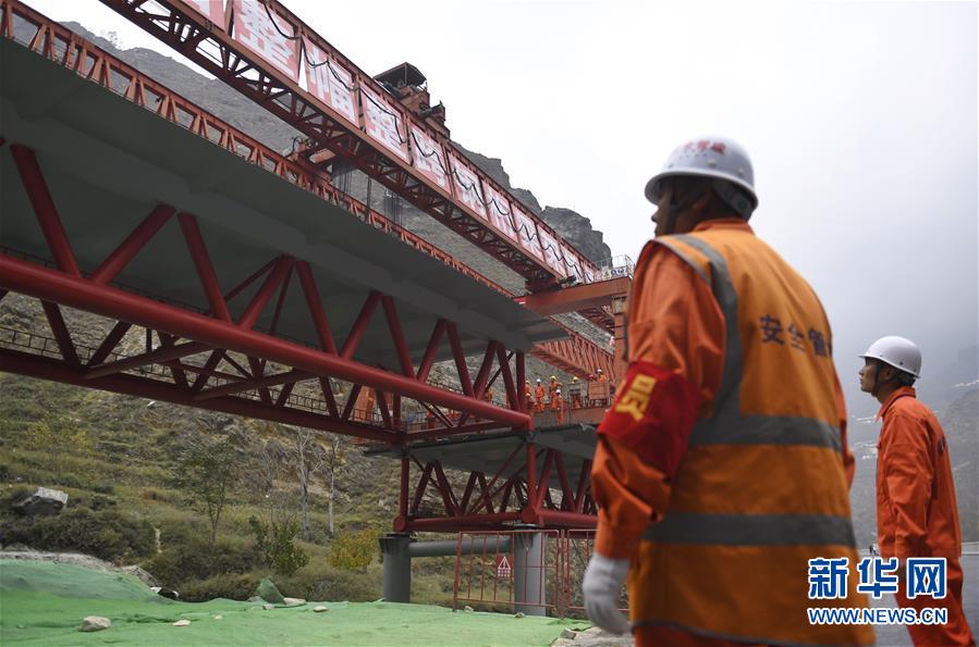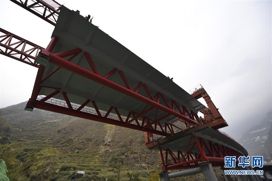 11月3日,工人在克枯大橋合龍現(xiàn)場工作。 當日,位于四川省阿壩藏族羌族自治州的汶(川)馬(爾康)高速的控制性工程克枯大橋合龍。 新華社記者 劉坤 攝