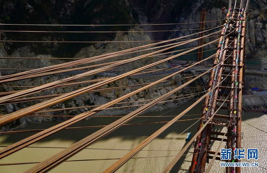 9月28日拍攝的川藏鐵路拉林段重點標志性工程藏木特大橋合龍儀式現(xiàn)場。 當日,隨著最后一節(jié)鋼管拱的對位和鎖定完畢,川藏鐵路拉林段藏木特大橋成功合龍,標志著大橋主體結(jié)構(gòu)施工取得了關(guān)鍵性勝利。藏木特大橋由中國中鐵廣州局集團承建,拱高112米,橋橫跨雅魯藏布江峽谷,水深66米。 新華社記者普布扎西攝