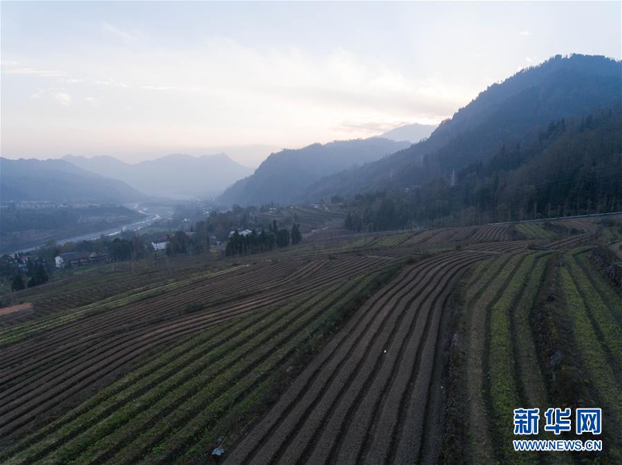 這是四川成都彭州市寶山村一角(12月3日無人機(jī)拍攝)。上世紀(jì)70年代,寶山村在大山中開出了715畝高產(chǎn)梯田。 新華社記者 江宏景攝