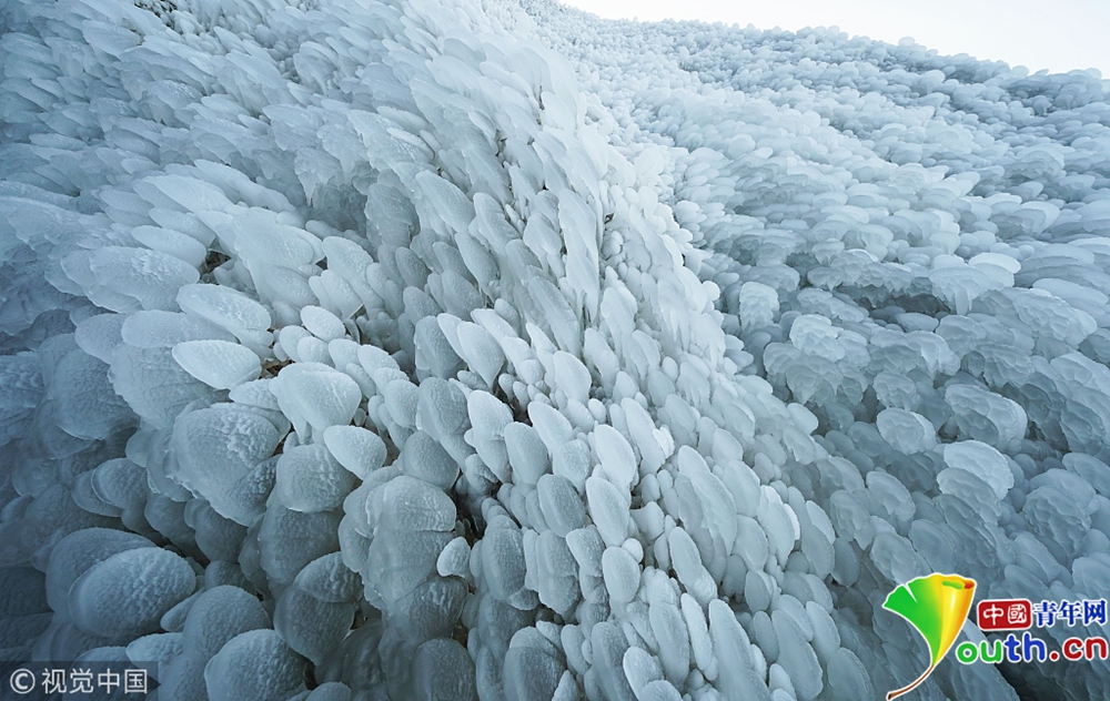 瀑布在零下12攝氏度的氣溫下結(jié)冰。圖片來源:視覺中國(guó)