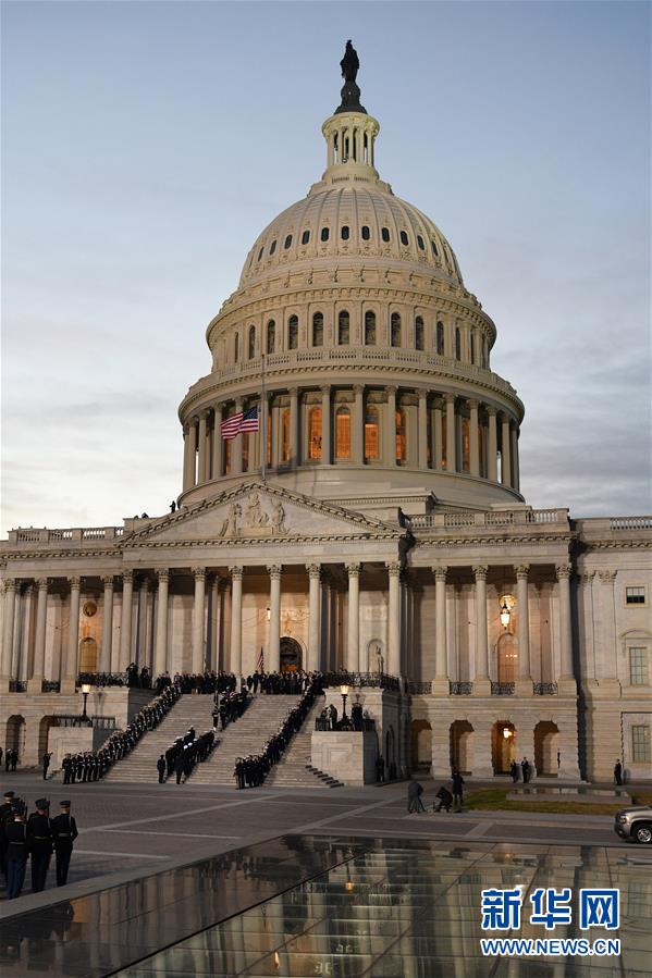12月3日,在美國首都華盛頓,美國前總統喬治·赫伯特·沃克·布什(老布什)的靈柩抵達國會大廈。