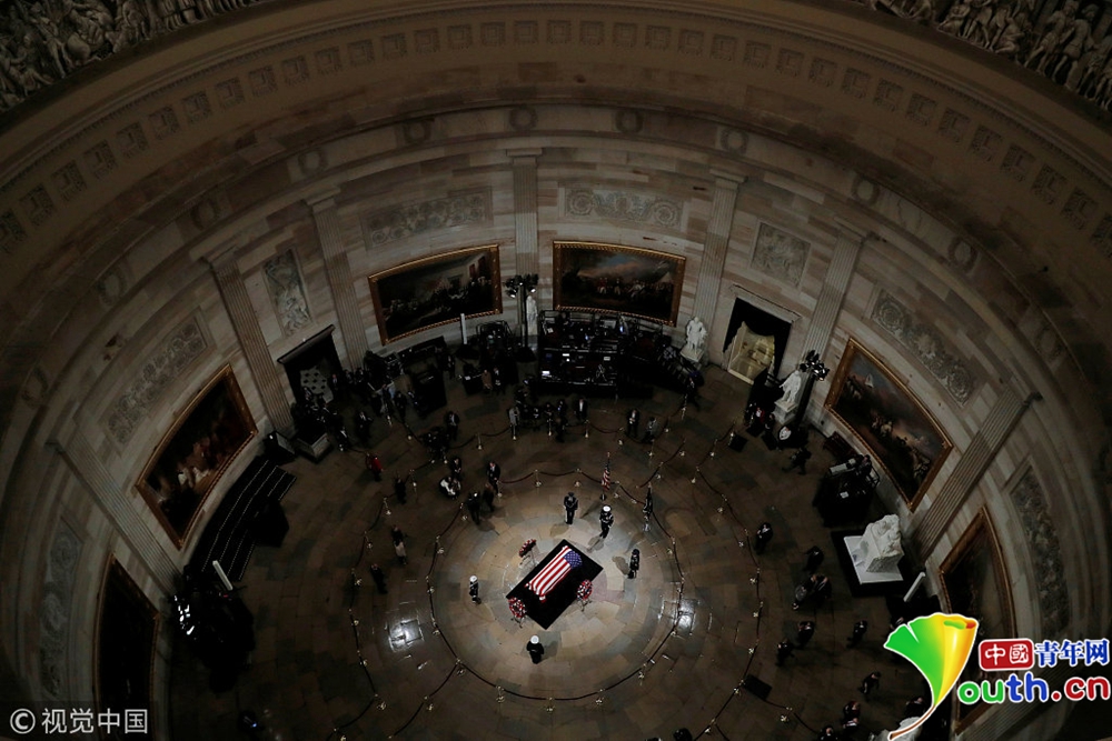 當(dāng)?shù)貢r(shí)間2018年12月3日,美國前總統(tǒng)老布什的靈柩送抵美國國會(huì)大廈,正式的追悼儀式就此開始。