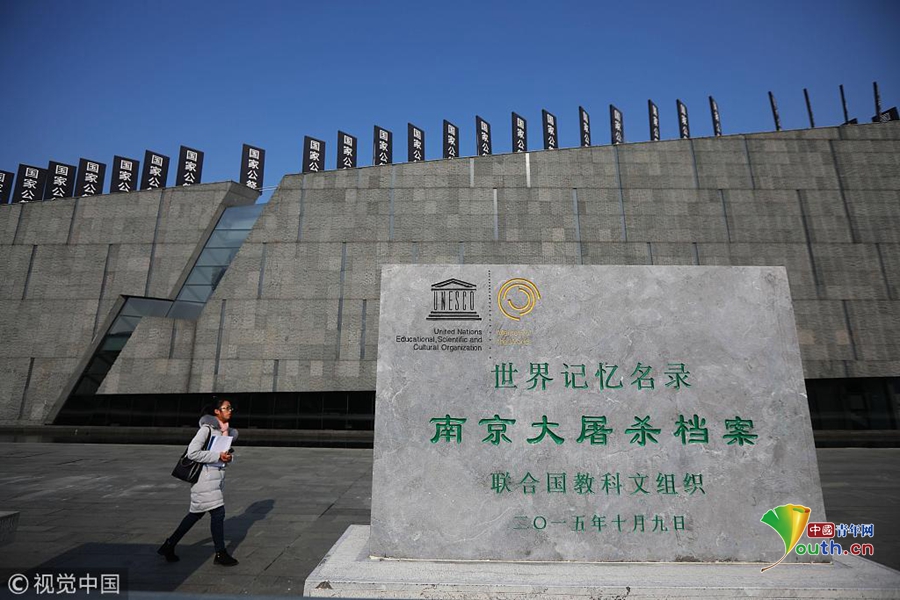 2018年12月12日,工作人員從侵華日軍南京大屠殺遇難同胞紀(jì)念館內(nèi)的“世界記憶名錄-南京大屠殺檔案”紀(jì)念碑前經(jīng)過(guò)。12月13日,南京大屠殺死難者國(guó)家公祭儀式將在侵華日軍南京大屠殺遇難同胞紀(jì)念館內(nèi)舉行。圖片作者:泱波