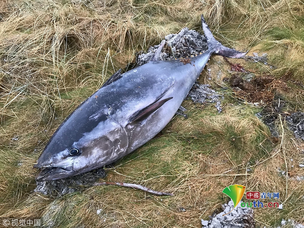 英國沙灘現(xiàn)2米長巨型藍(lán)鰭金槍魚