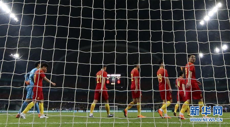 圖為2018年3月22日,中國隊球員在廣西南寧體育中心舉行的2018中國杯國際足球錦標賽中以0比6不敵威爾士隊后離場的資料照片。 新華社記者曹燦攝
