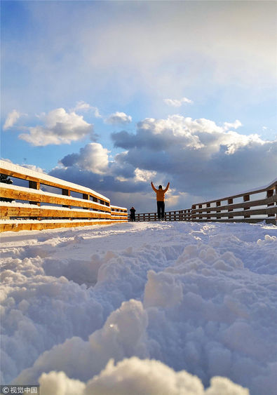 山東煙臺迎來初雪 獨特的海濱雪景美若童話