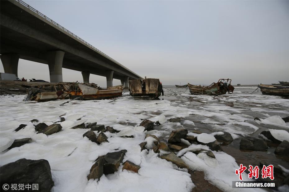2018年12月7日,山東煙臺,雪后的海濱景色。
