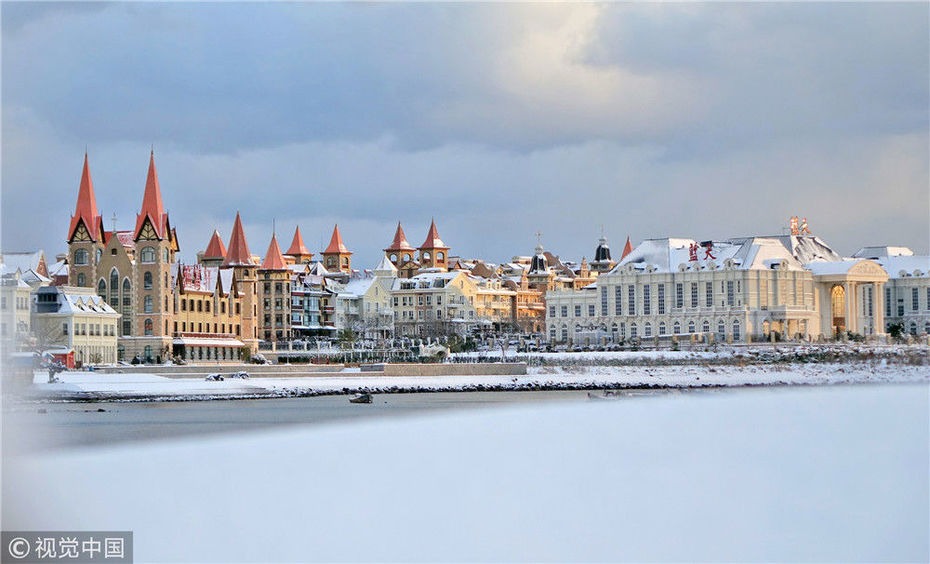 2018年12月7日,山東煙臺,雪后的海濱景色。