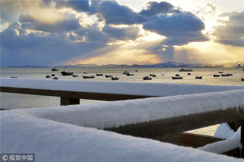 2018年12月7日,山東煙臺(tái),雪后的海濱景色。