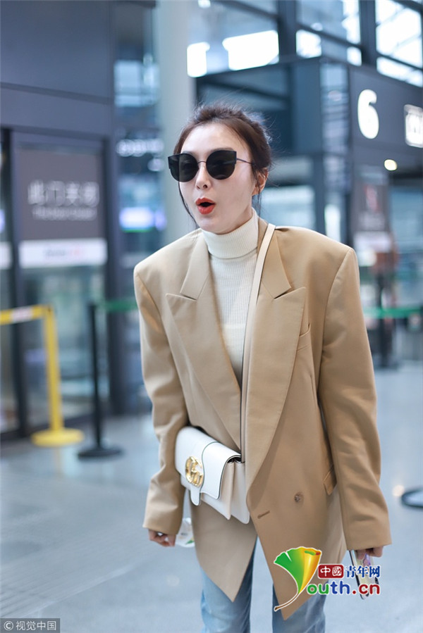 2018年12月11日,上海,秦嵐現(xiàn)身機場。她穿淺西裝配高領毛衣溫暖又時尚,梳丸子頭清新減齡,機場獲粉絲送告白信,嬌羞嘟嘴賣萌少女范十足。