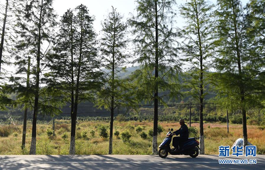 舒港發(fā)騎電動車到田里干農活。他家種有楊梅和西洋參等農作物(10月27日攝)。